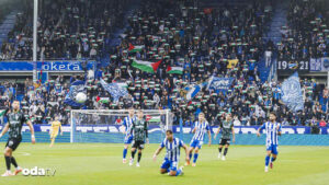 İspanya LaLiga 8. hafta maçında, Alaves ile Elche takımları Vitoria-Gasteiz şehrindeki Mendizorrotza Stadı’nda karşı karşıya geldi. Alaves takımının taraftarları Filistin’e için pankart açtı.